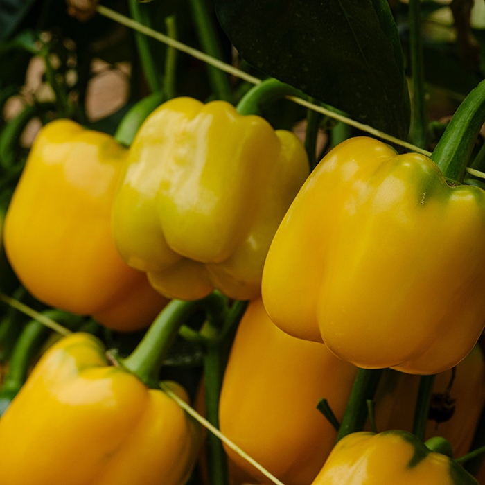 80 days green; 110-130 days mature. Very attractive, mostly 4-lobed, blocky, 4½" by 4½" bells have smooth shoulders and mature from pale green to golden yellow. High quality, thick walled fruits are firm, juicy and full of sweet, yet savory flavor. Compact plants provide good leaf cover to protect fruits from sunscald. Great for containers and small space gardens. Performs better at the end of the season in warm conditions than comparable varieties. Highly resistant to Tomato Mosaic Virus and Pepper Mottle Virus with intermediate resistance to Powdery Mildew, Root-Knot Nematodes and Tomato Spotted Wilt Virus. High yielding.